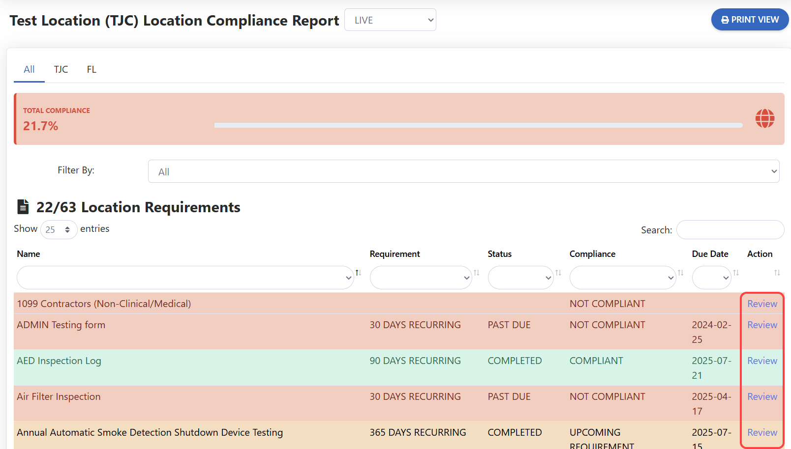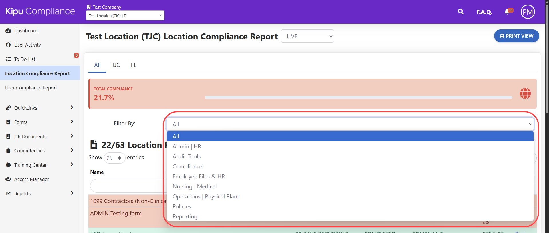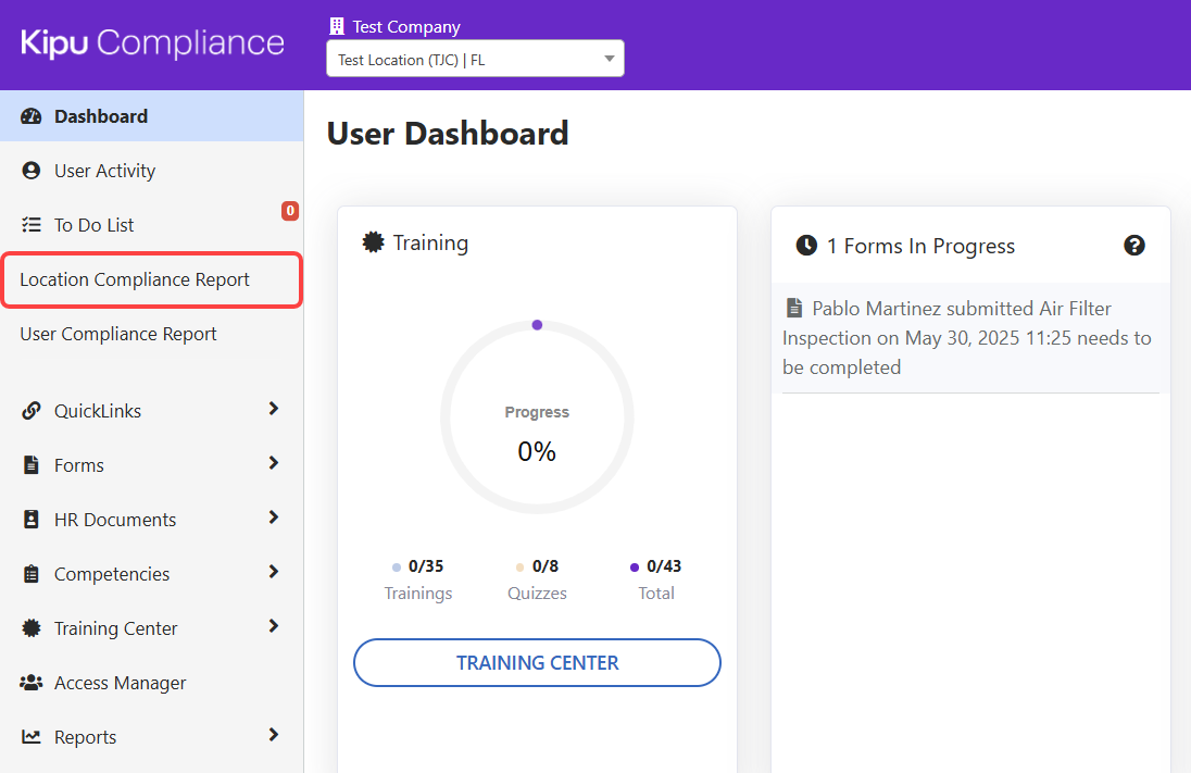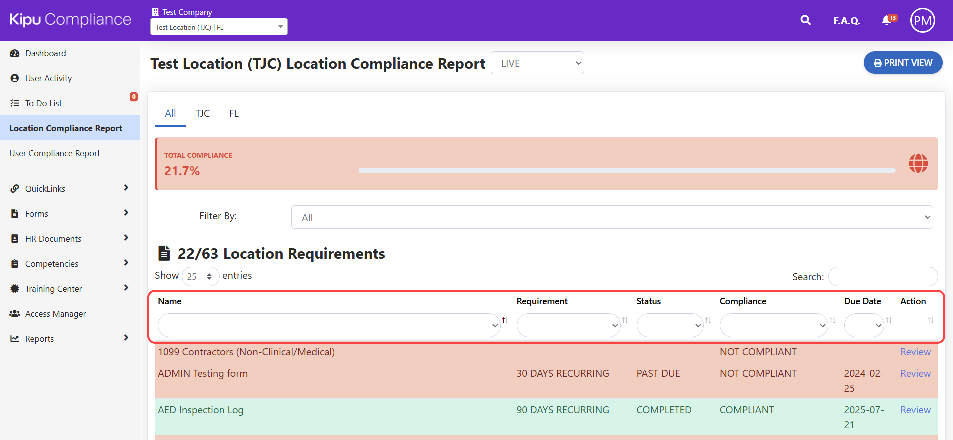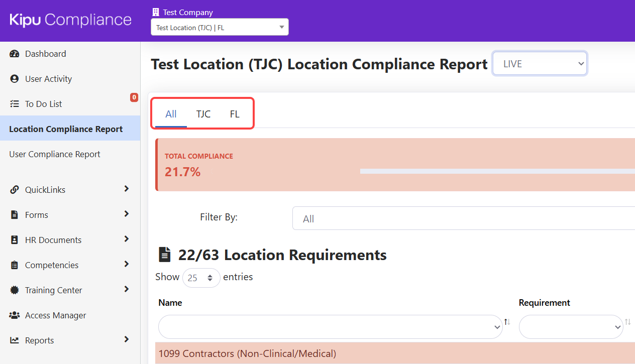 Please Note: Not all users will have access to the Location Compliance Report. Access is determined by user role-based permissions.