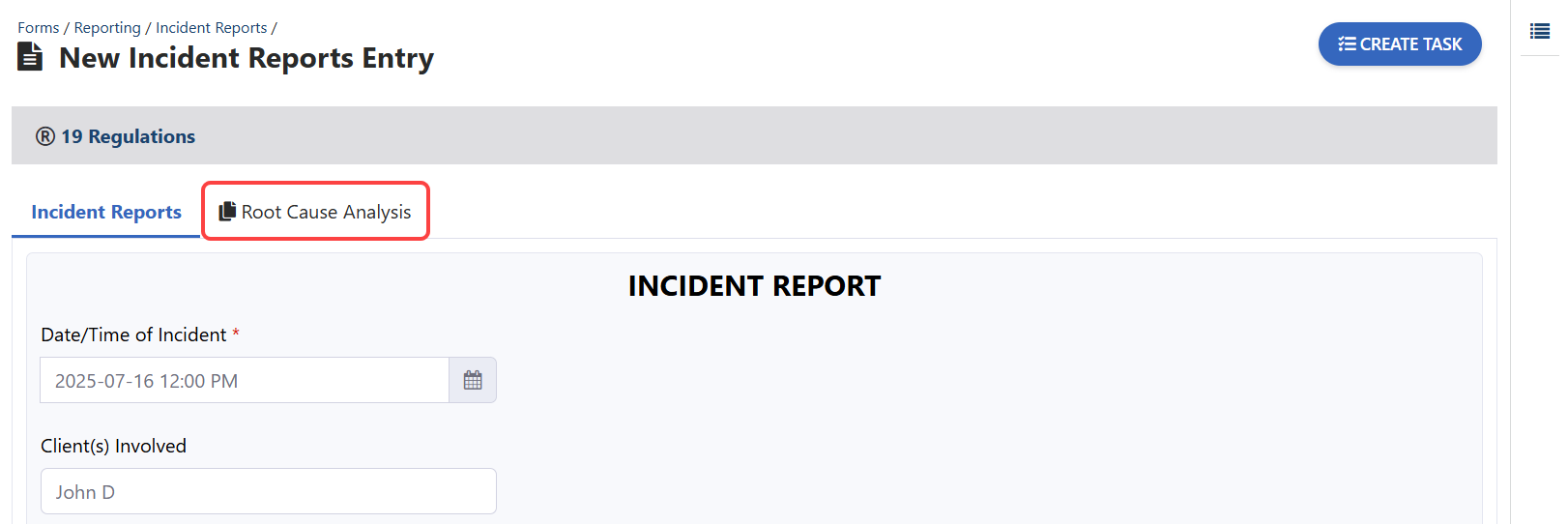 Note: Once the Incident Report is complete, the related form (Root Cause Analysis) form will become available.