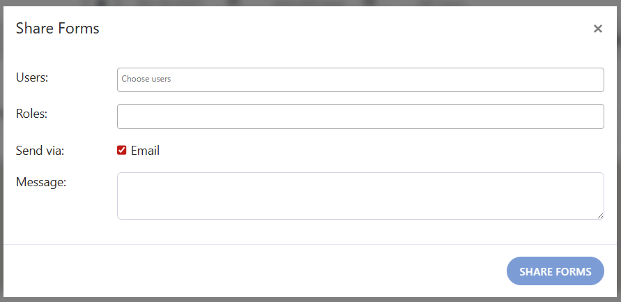 - The Share Forms pop-up will open, allowing you to specify the following: