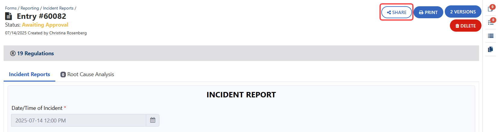 - Click the Share Forms button to send the form.