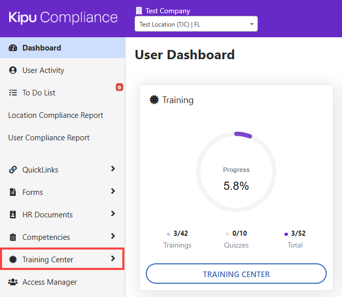 - Click Training Center on the navigation menu on the left.