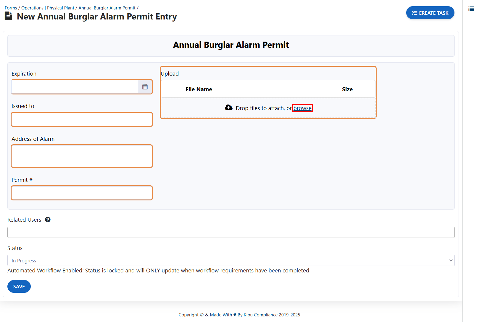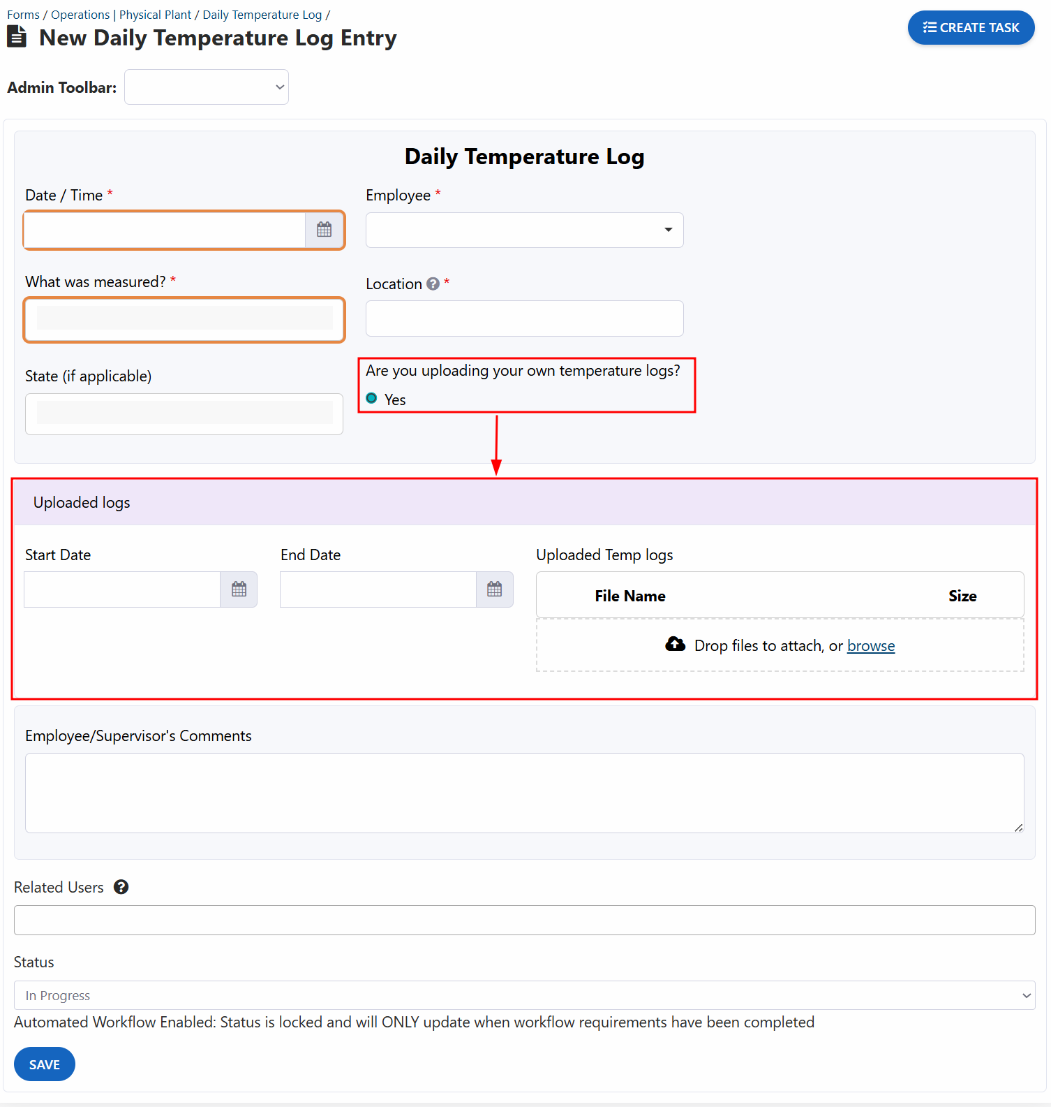 All users can upload documents to forms that they have access to if the field is present by following the below steps.