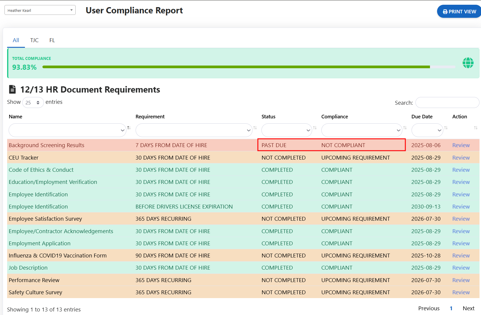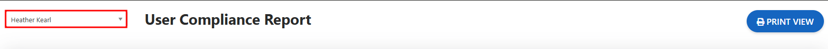- Select the name of the staff from the drop-down in the top left corner of the User Compliance Report page.
