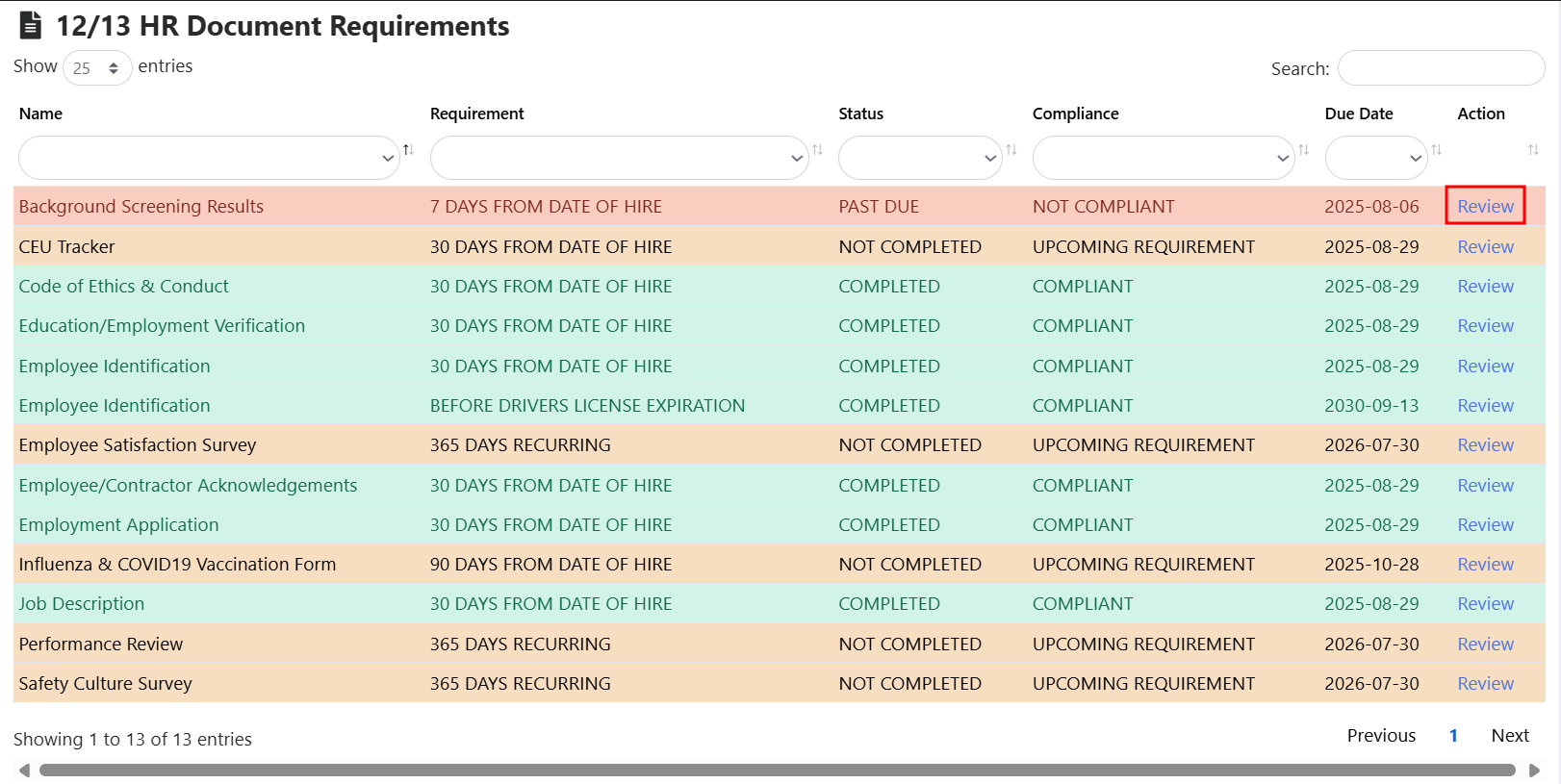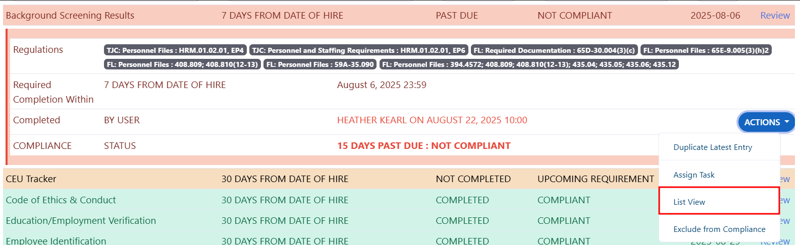 - You will be redirected back to the main view. Once it refreshes the screen it will update as compliant.