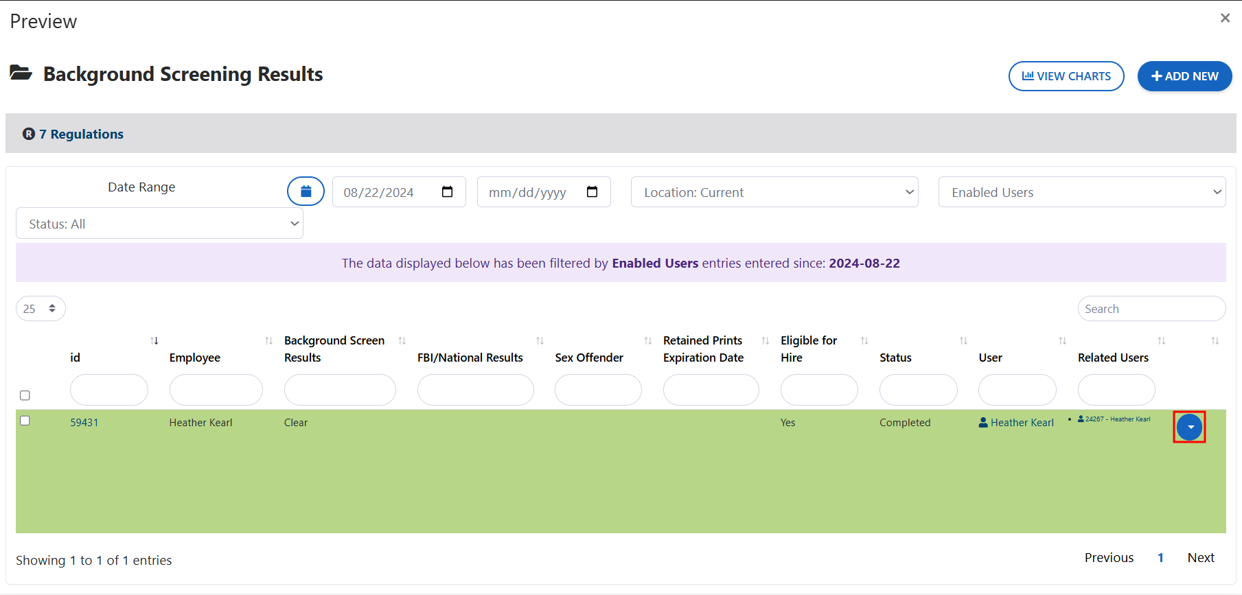 - Select the Find In Kipu Compliance magnifying glass in the top purple banner.