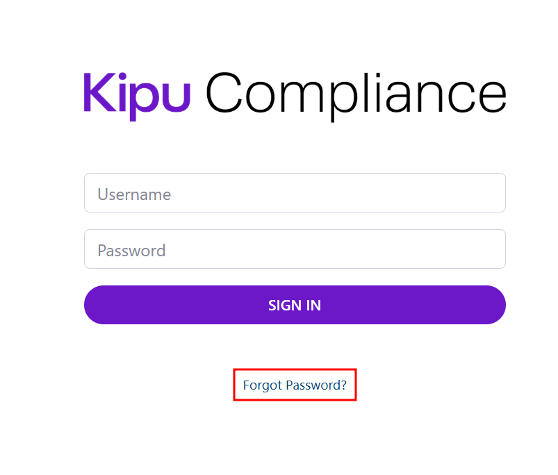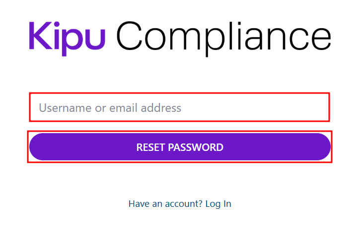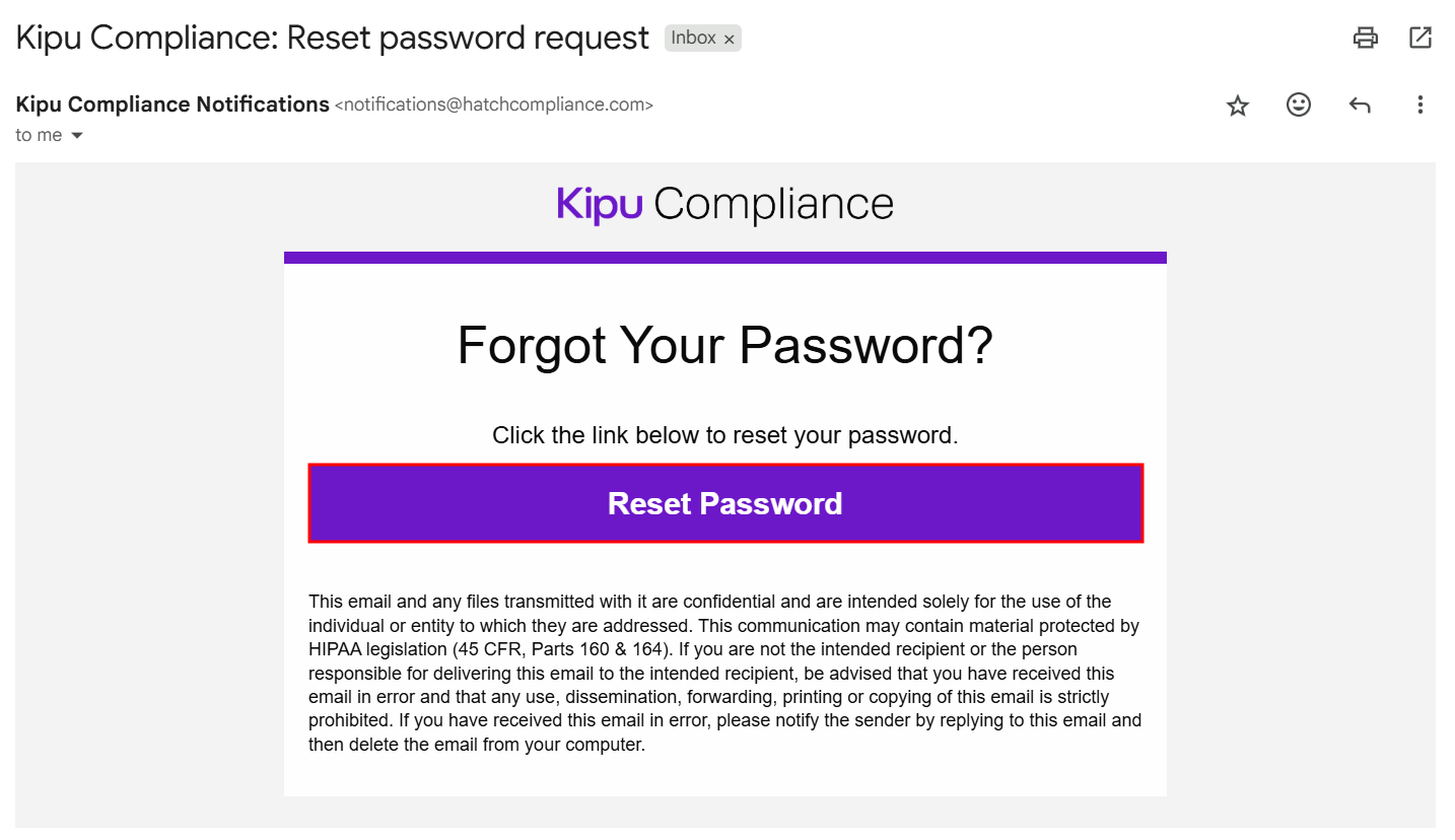Select the Reset Password button in the email to be redirect to Kipu Compliance.