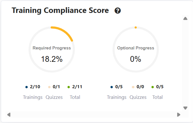 This shows the amount of Required and Optional Trainings and Quizzes assigned and their progress on them.