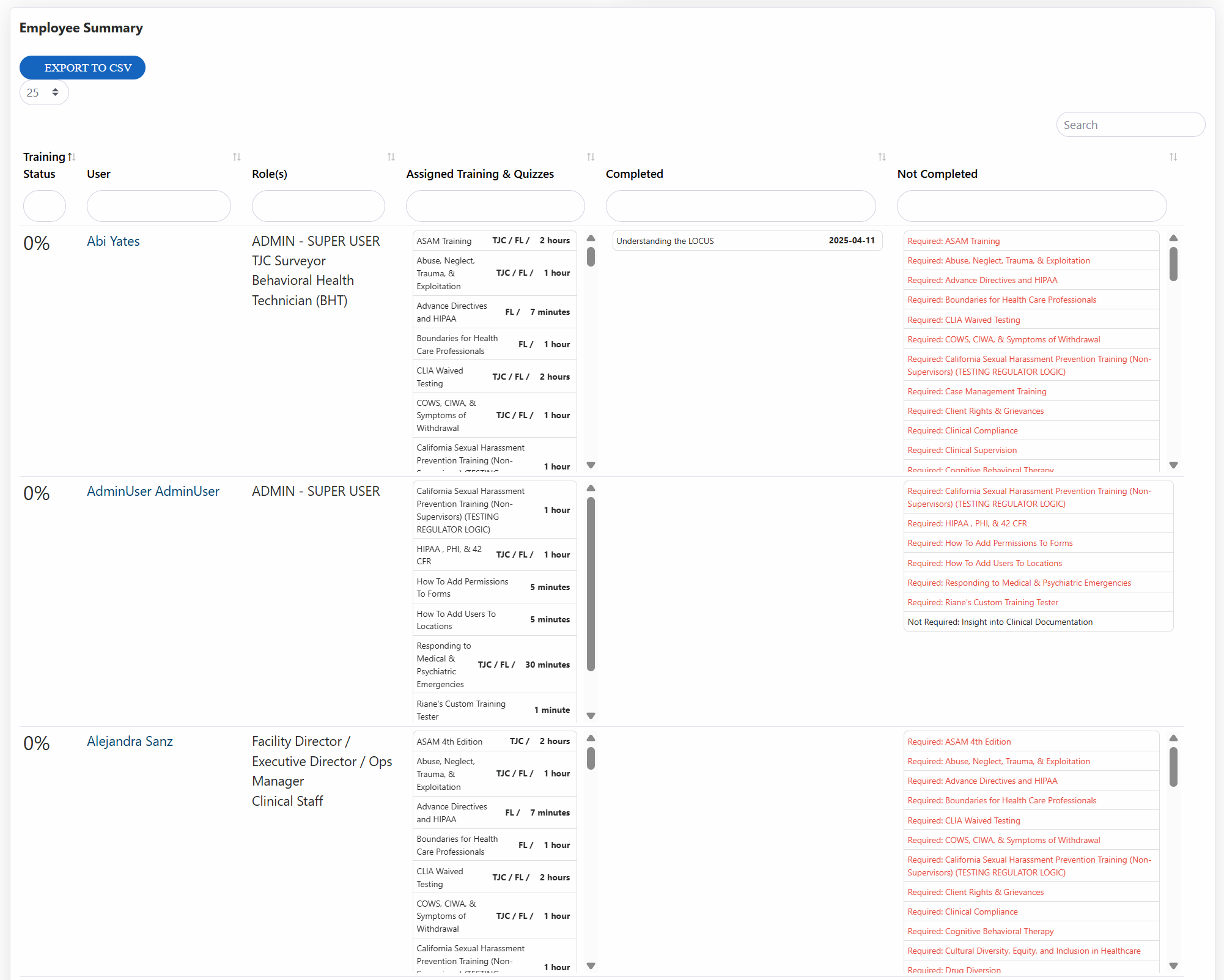 This feature is typically used by users with the HR role to track their staffs trainings and remind them of items needing to be completed.