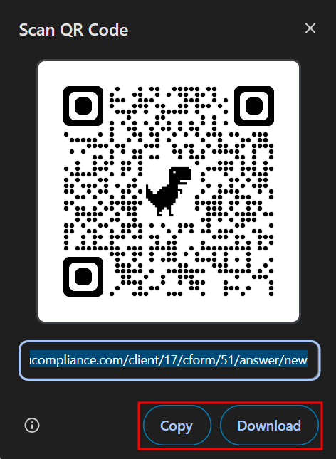Once the QR code is generated, either copy & paste the link for sharing via email or download & print the QR code for physical copies that you can set up around the facility.