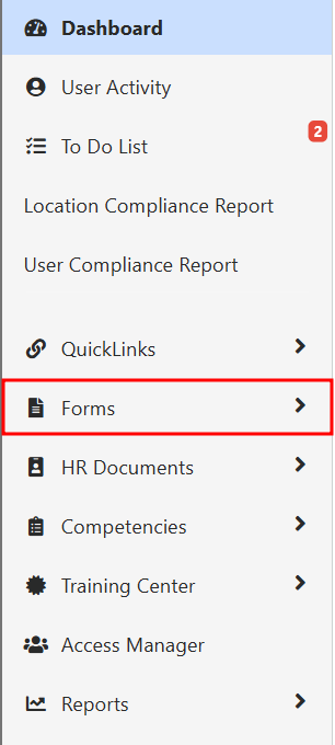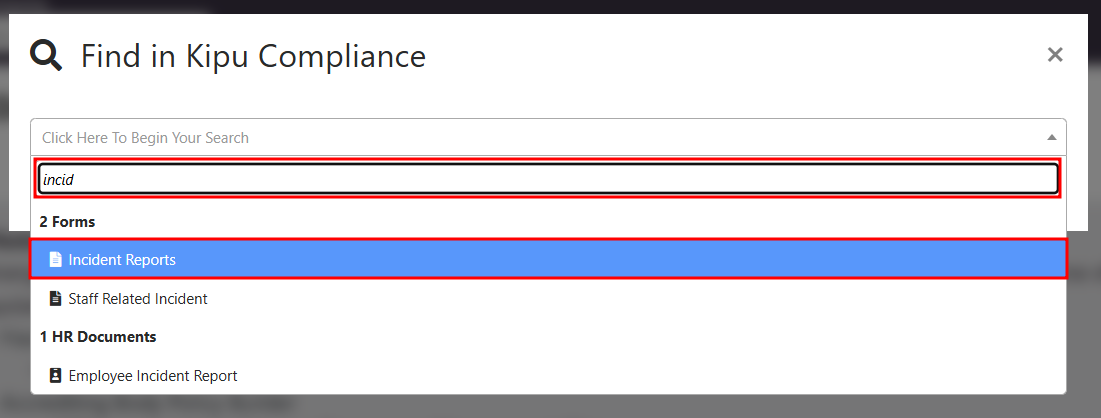 - Locate the form that needs a QR code. Either search from the Find in Kipu Compliance search or if you know where it's set up under the Forms tab and open it.