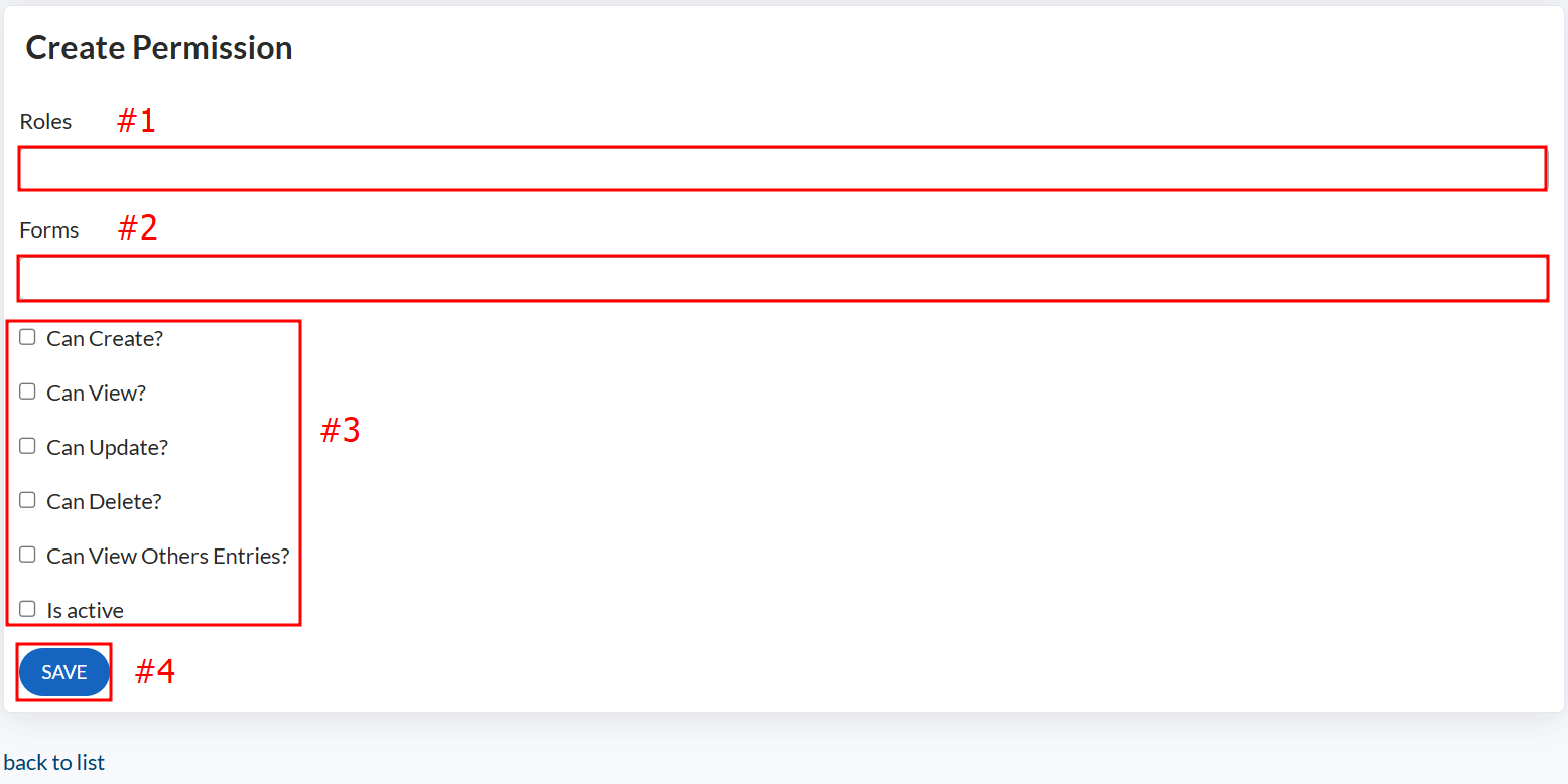 - From the new page select the necessary information for Role, Form, and access before saving.