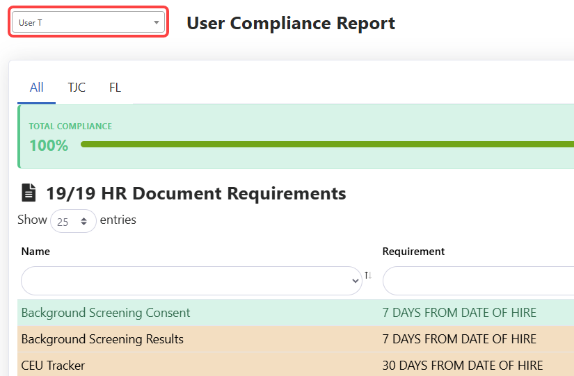 - Click the User Compliance Report from the navigation menu.