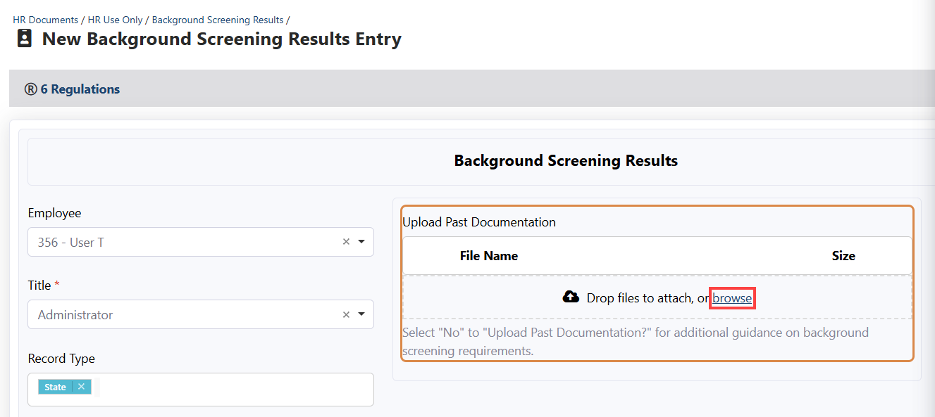 - In the new Upload Past Documentation area that appears, click Browse to upload the document from your device.
