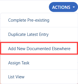 You can view the details of a Documented Elsewhere entry to confirm completion information, review supporting documentation, or verify audit details. Viewing an entry does not require edit access.