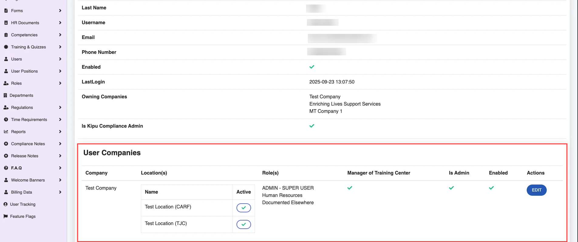 - Go to Access Manager → Edit User → Click "Manage Training Permissions"