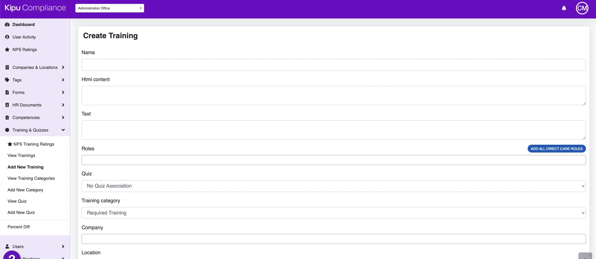 Location administrators can customize which trainings apply to which roles at their specific location.